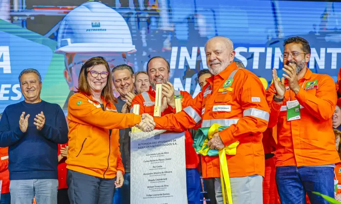 O presidente Luiz Inácio Lula da Silva participou nesta quinta-feira (15) da reativação da fábrica de fertilizantes Araucária Nitrogenados S.A. (Ansa), subsidiária da Petrobras, em Araucária–PR. A unidade, que havia sido fechada em 2020, recebeu um investimento de R$ 870 milhões para sua reabertura.